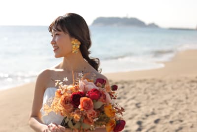 メイクはオレンジメイクでブーケと合わせたトータルコーディネートさせていただきました!