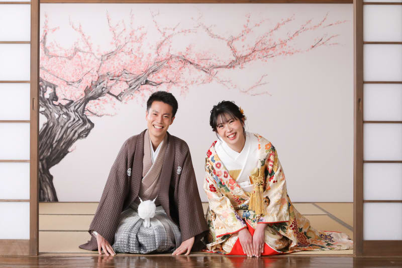シンプルな駅前店と、背景があるみなとみらい店での和装撮影