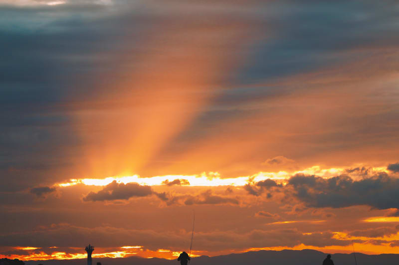 雲と太陽の織りなす模様がとても美しい1日でした。当初は曇りだったのですが、日没の時だけ綺麗に光が差して。1日頑張ったお二人へご褒美ですね。