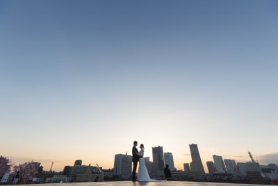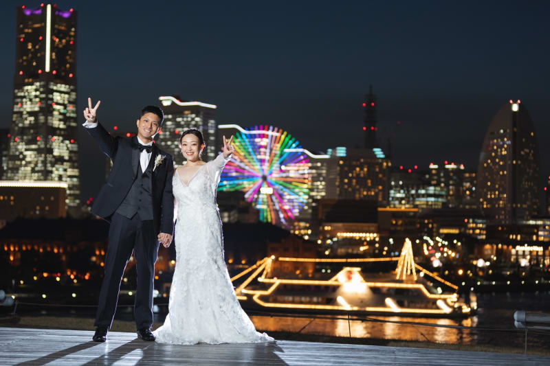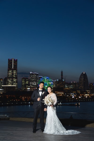 【横浜で記念日】汽笛が二人のスタートを祝う横浜のロケーションで美しい一枚を