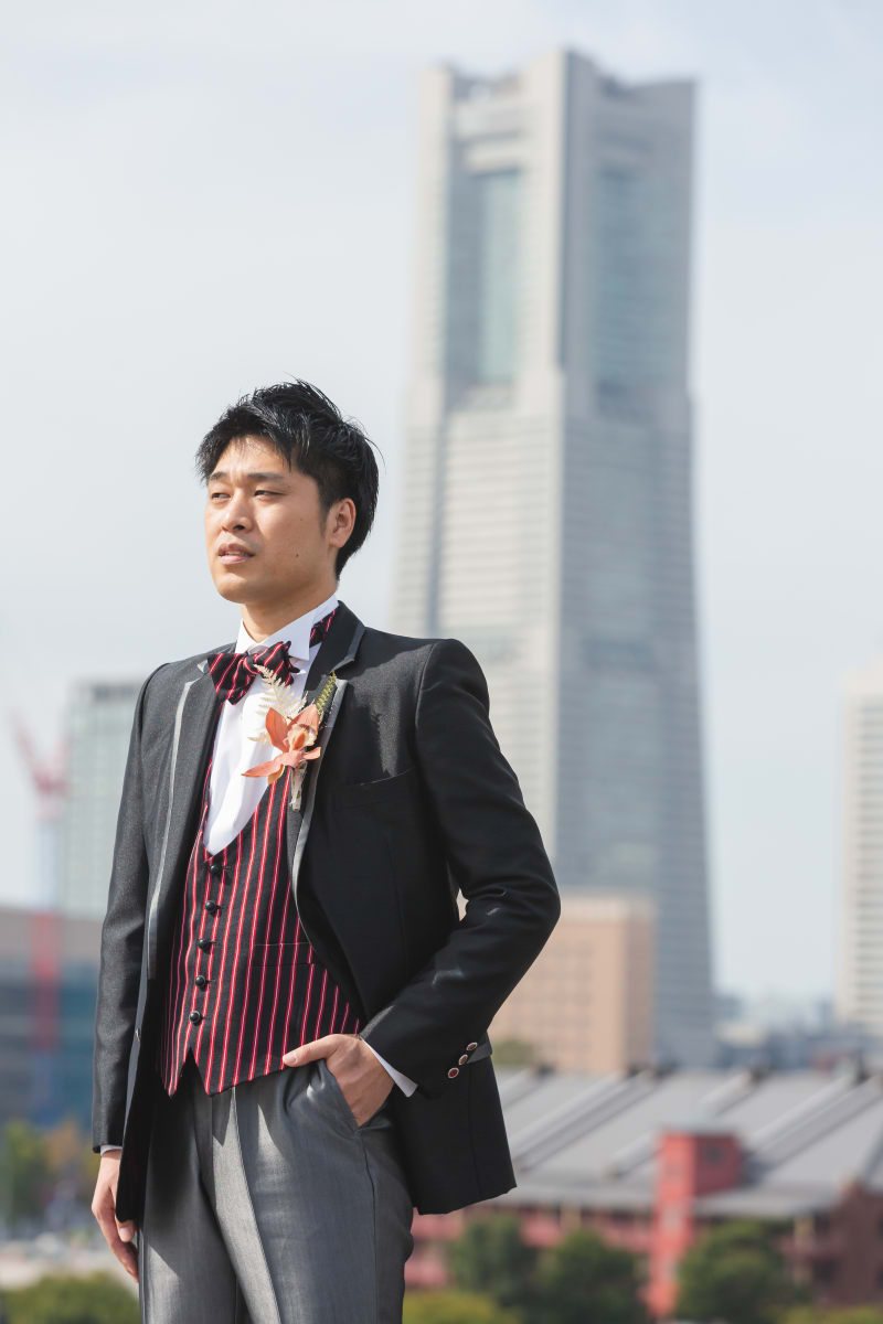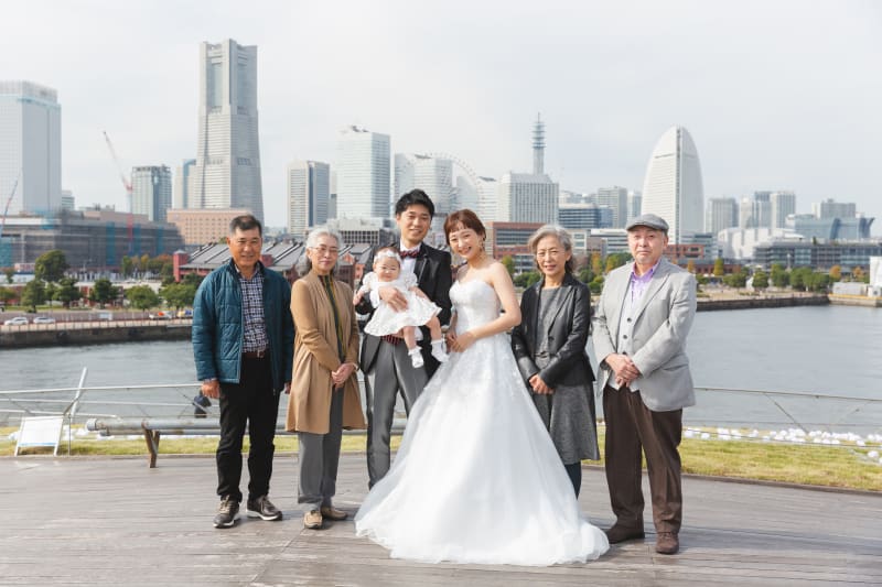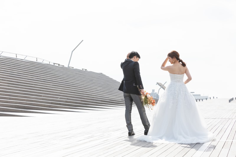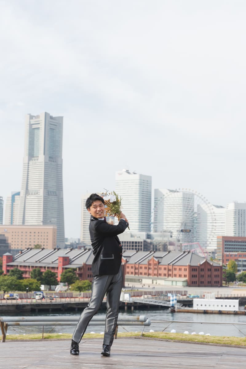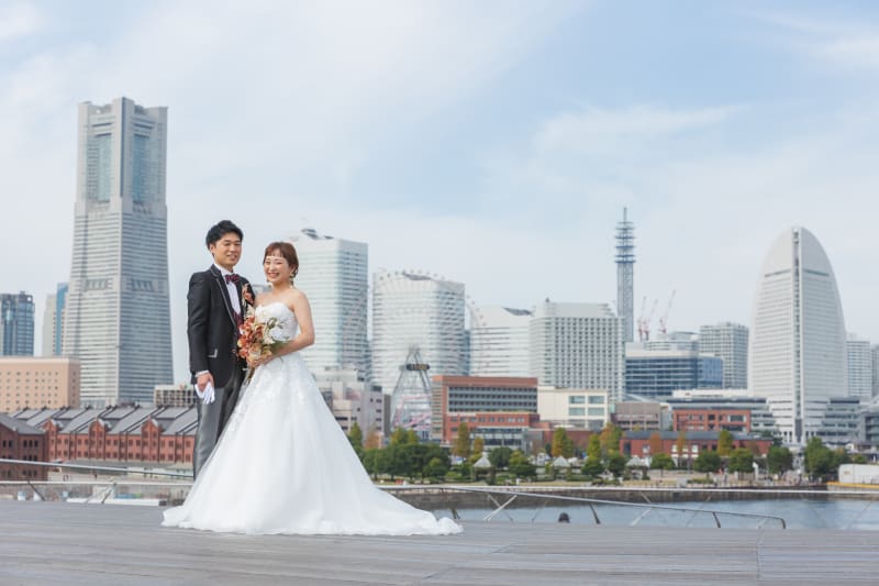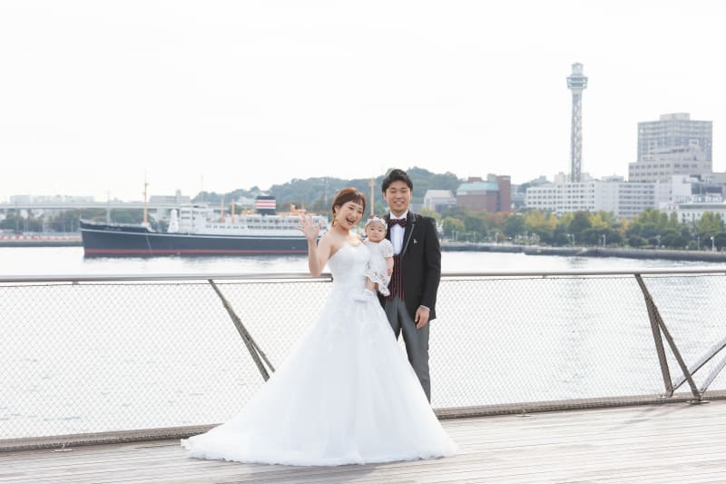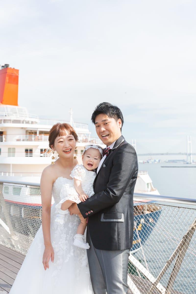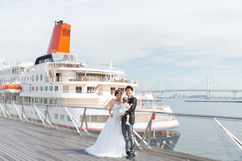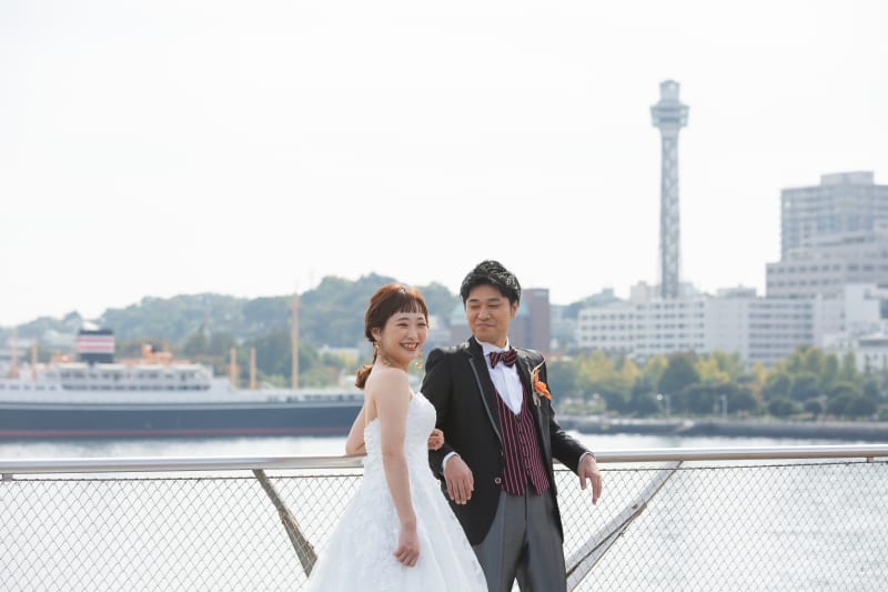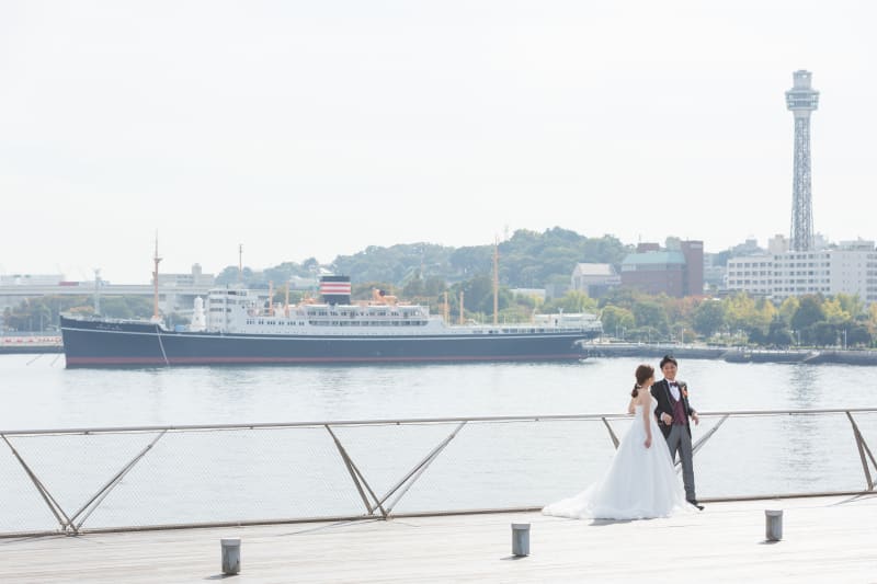 【横浜で記念日】汽笛が二人のスタートを祝う横浜のロケーションで美しい一枚を