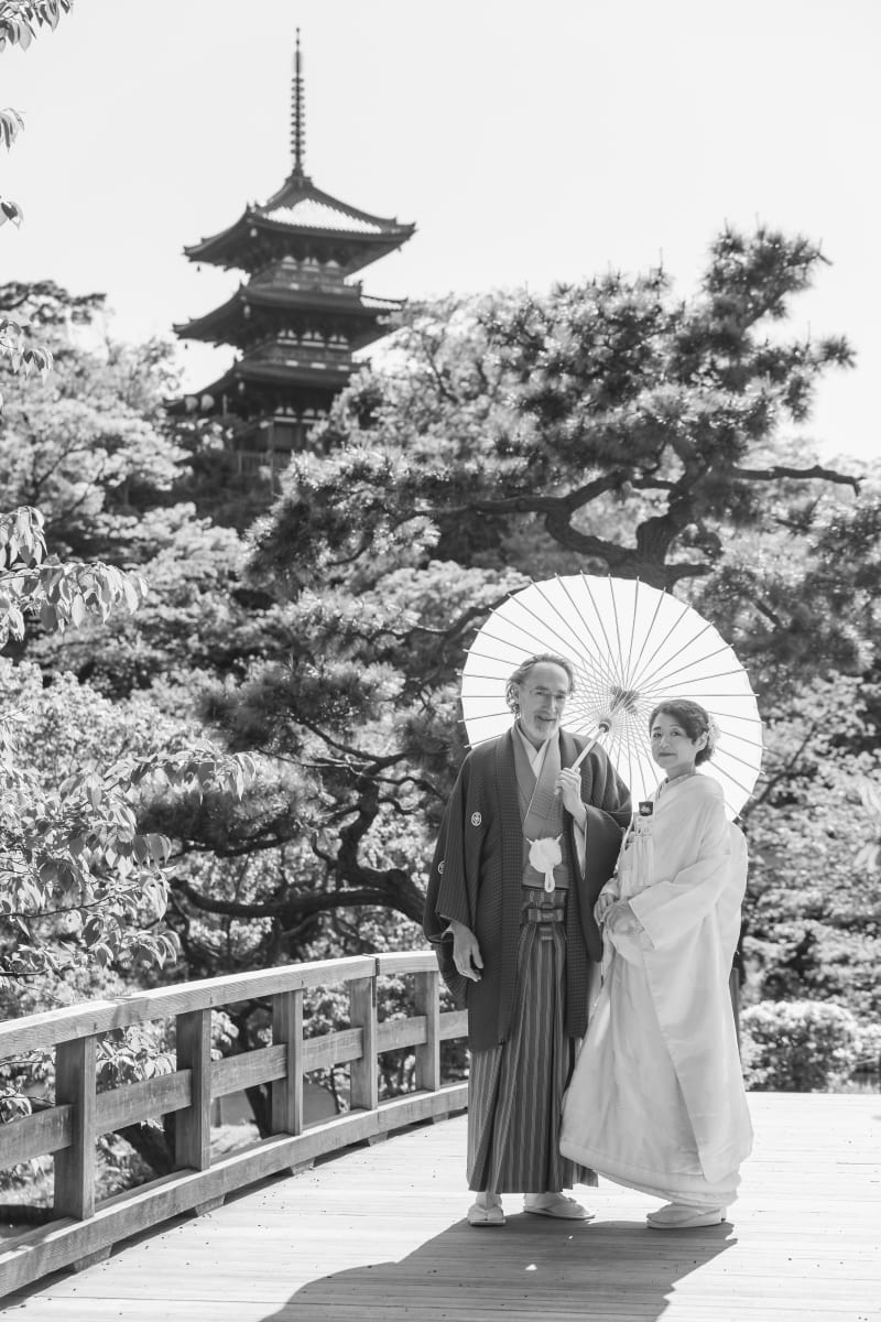 旦那様はご出身がカナダとのことで三溪園の植物や生き物を珍しそうに観察されていたり、指輪の代わりにプレゼントされたという革製の靴を2人で履いて撮ってみたり、杖の陰で時間を予想してみたり・・・そんなお二人をカメラマンの私もワクワクしながら撮影をさせていただきました^^