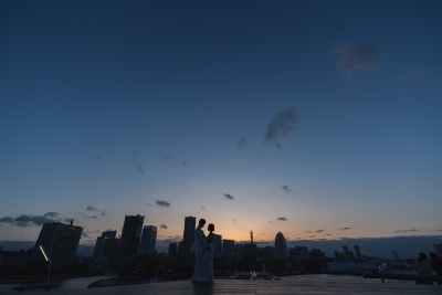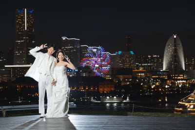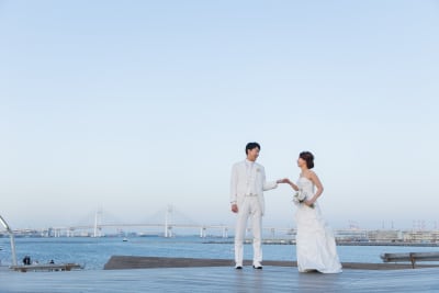 【横浜で記念日】汽笛が二人のスタートを祝う横浜のロケーションで美しい一枚を