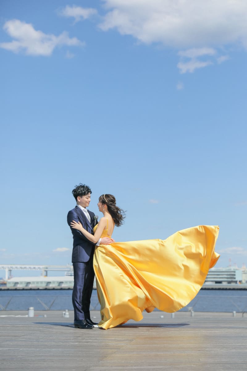 【横浜で記念日】汽笛が二人のスタートを祝う横浜のロケーションで美しい一枚を