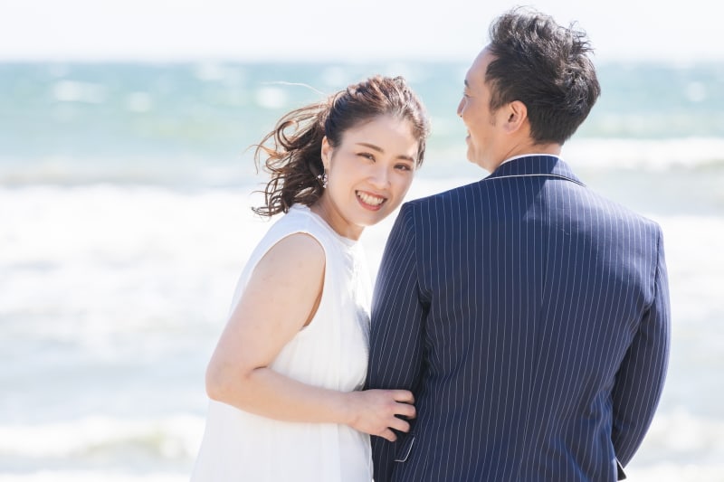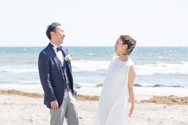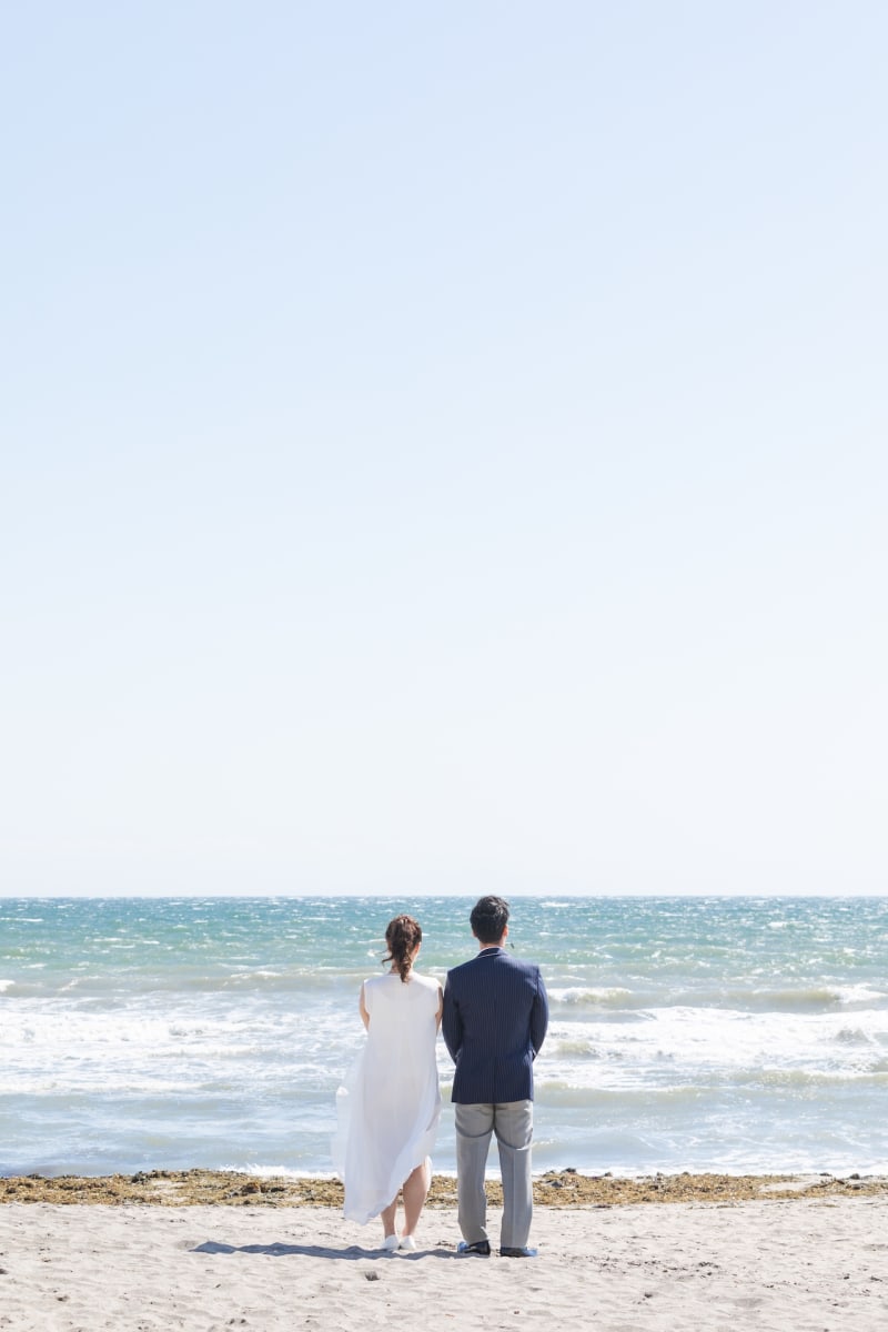 ウエディングというとかっちりとした印象は強いですが、海でのロケーションは開放感があるのでより自然体の雰囲気で撮影いただけます^^