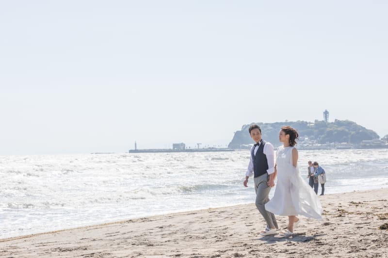 2人で海辺を散歩しているような雰囲気も^^遠くには江ノ島も見えます!