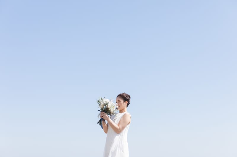 広い青空の中に真っ白なお衣装がとっても引き立ちますよね♡
