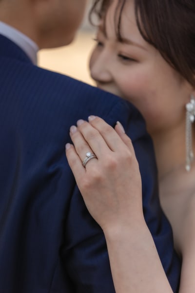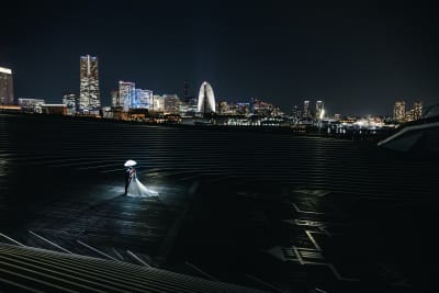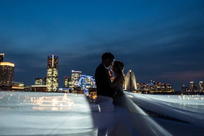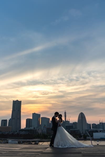 【横浜で記念日】汽笛が二人のスタートを祝う横浜のロケーションで美しい一枚を