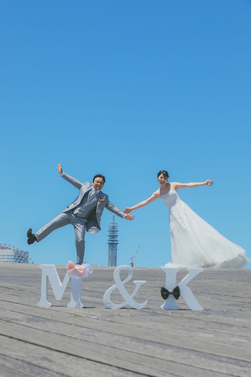 【横浜で記念日】汽笛が二人のスタートを祝う横浜のロケーションで美しい一枚を