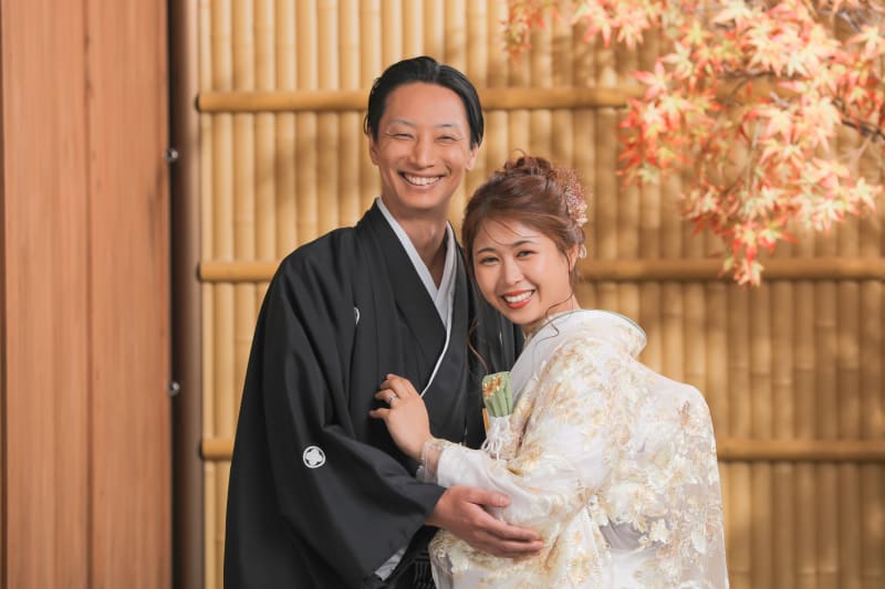 紅葉の雰囲気はお二人が柔らかく映りますね^^ お二人寄り添って仲良く笑顔で^^