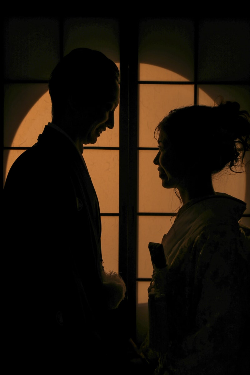 逆光の感じが手を繋いでるお二人をまるで外にいるかの様に包みます^^