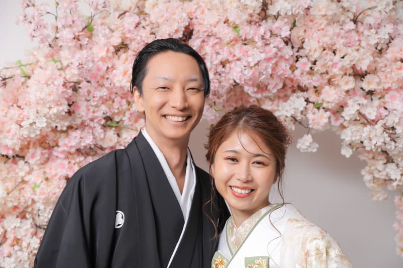 桜のアーチがお二人の笑顔をさらに引き立たせてくれます^^