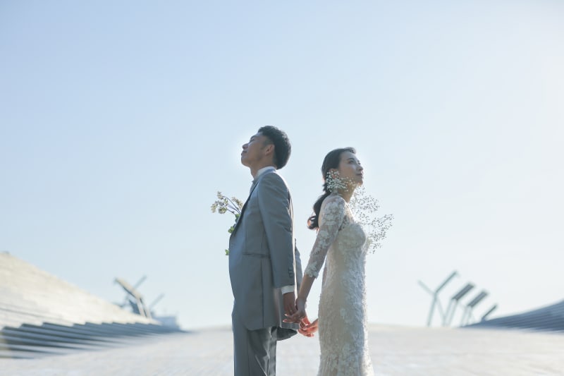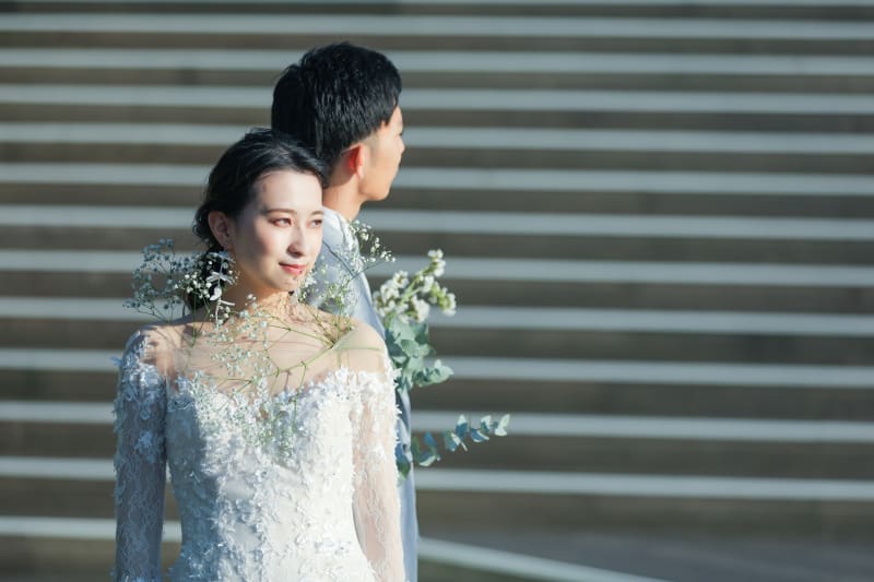 この日はお花を使ったり、みなとみらい背景以外にも階段や空を背景にしたり、みなとみらい背景以外の大桟橋ロケーションの写真のご紹介です♪