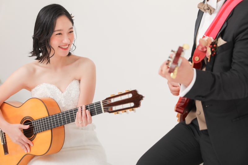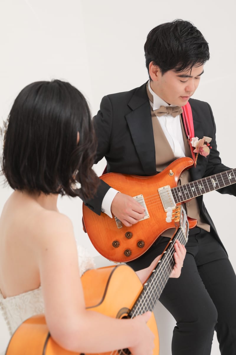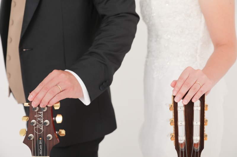 お2人の共通の趣味であるギターに添えた手元。指輪にフォーカスしたお写真もしっかり残しましょう^^