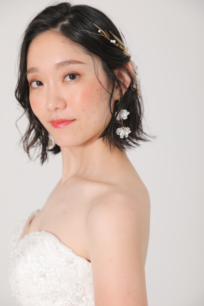 ご新婦様のソロカット。メイクスタッフのご指名も頂き、こだわりのヘアメイクもしっかりと♡