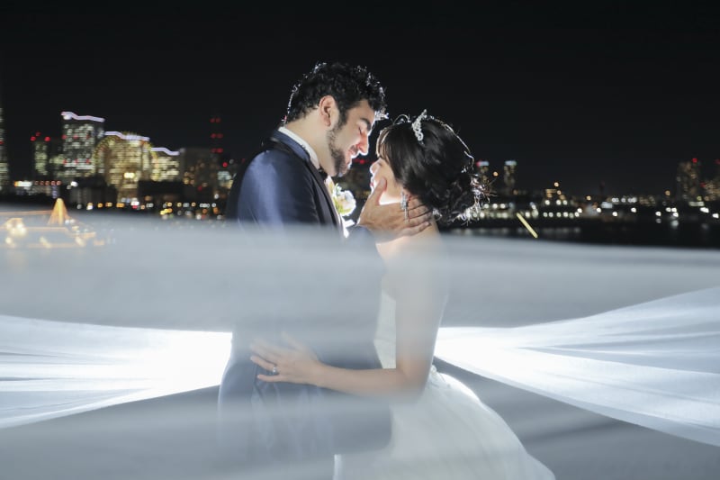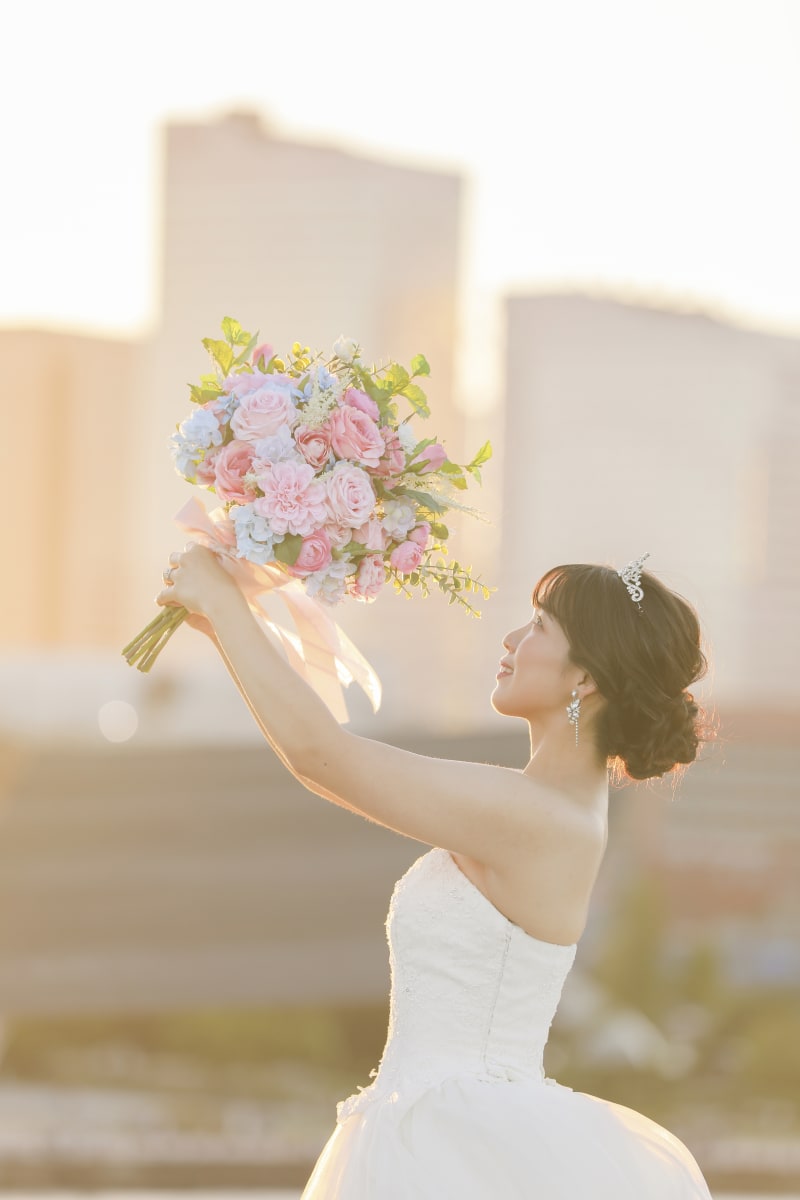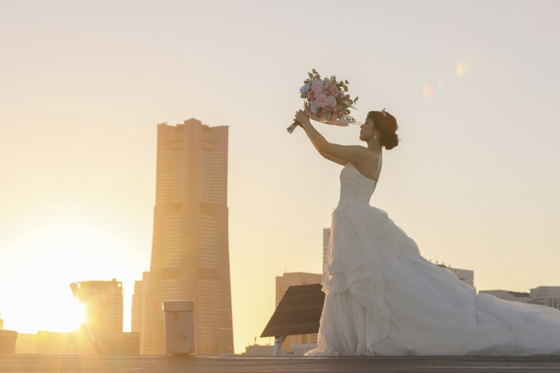 夕陽が沈む一瞬。幻想的な雰囲気が新婦様によく似合います
