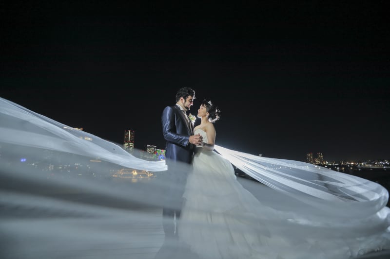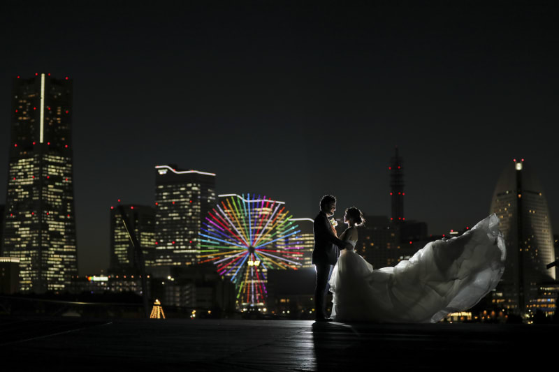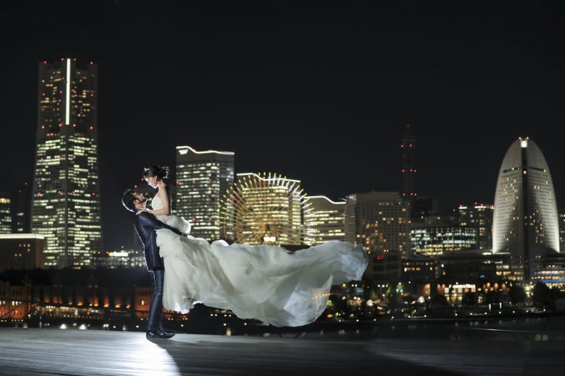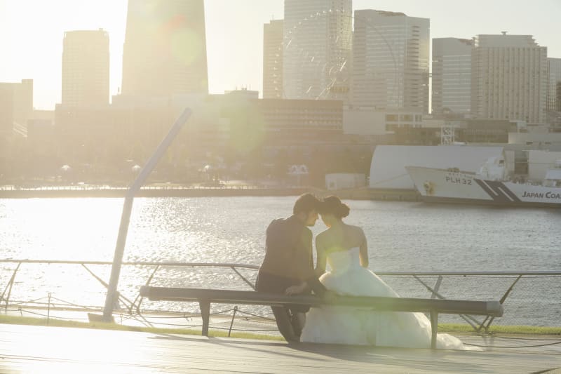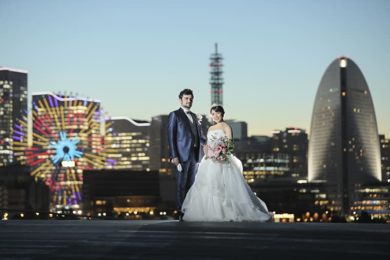 こちらもお二人のご希望ショット。みなとみらいの街を見下ろせる場所で