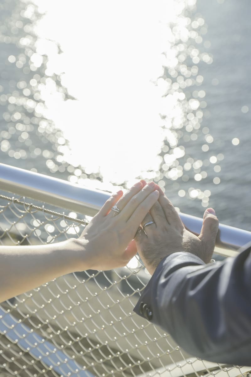 まず始めにお二人ご希望の水面の反射を背景に手元のショット