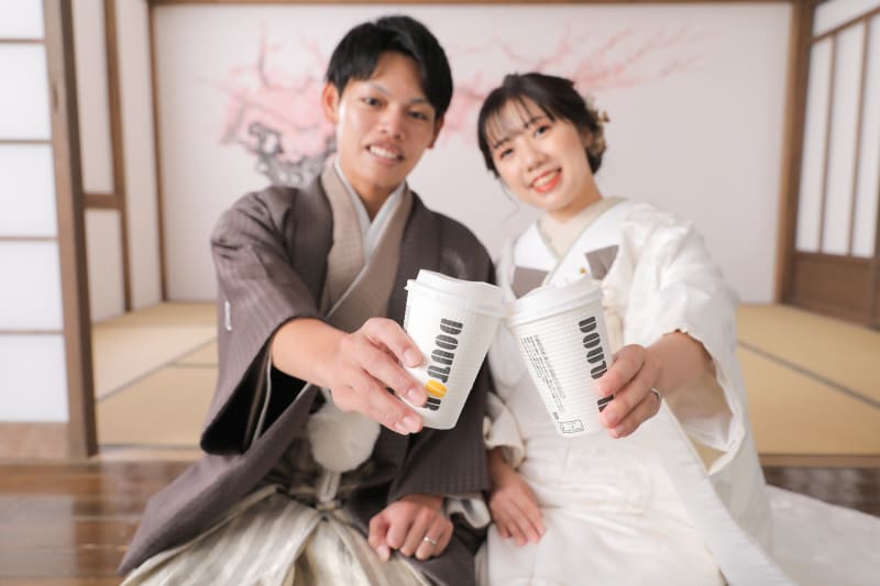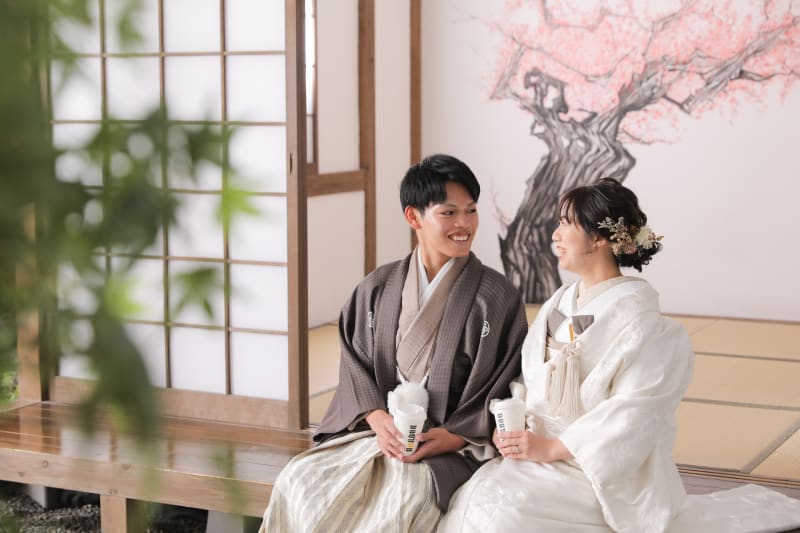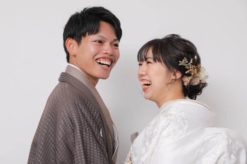 お2人が引き立つシンプル白背景での撮影も最近定番になりつつあります◎
