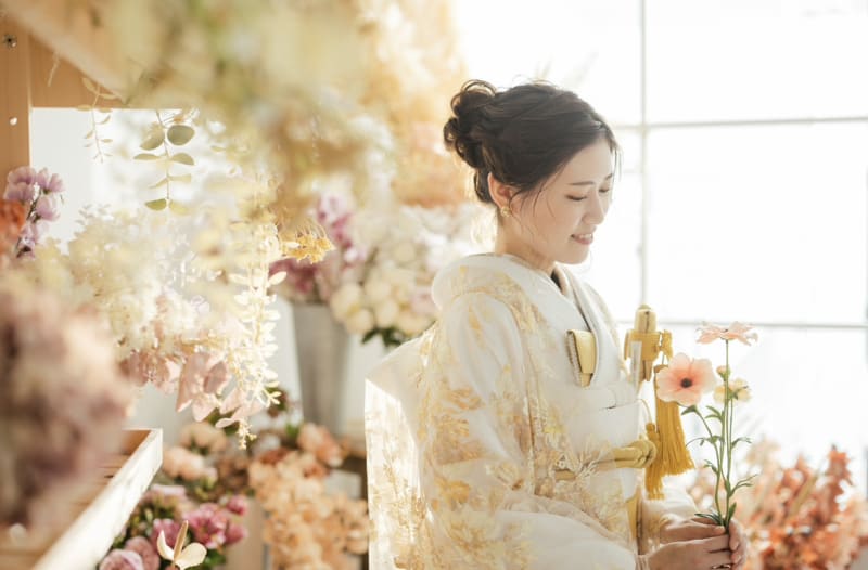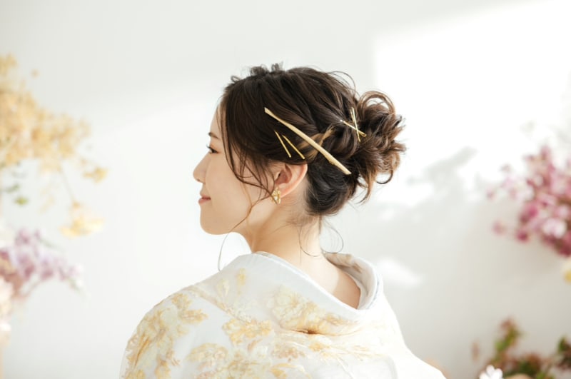 和装は高めのアップにゴールドアクセでお洒落に華やかに♡