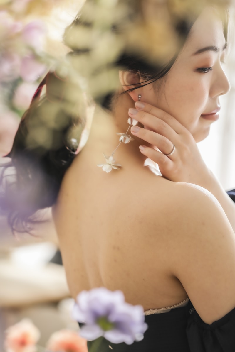 新婦様の横顔と指輪とイヤリング。全てが美しく高めあっていました。
