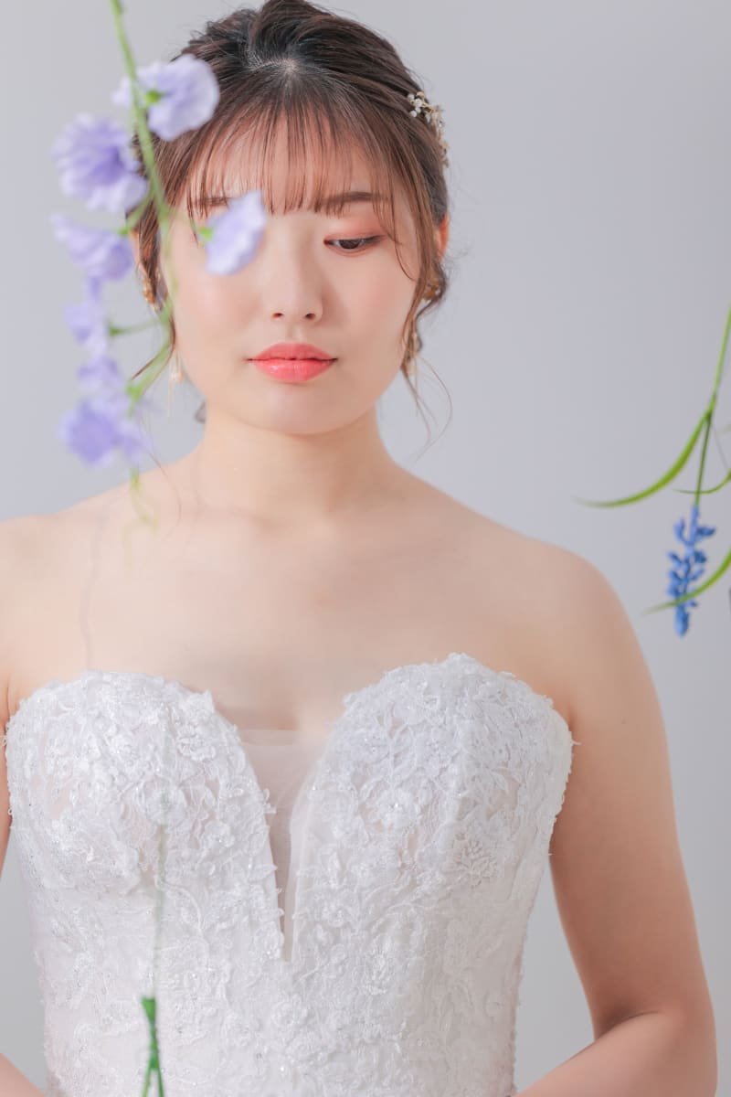 お花で目隠し風に。笑顔も良いけど、おすましのミステリアスな表情も素敵。