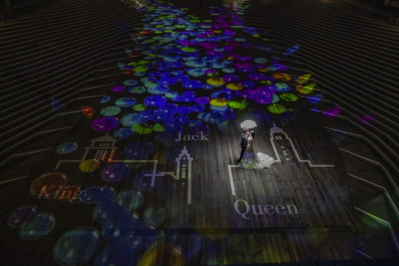 この時期午後5時になると大桟橋の一部はプロジェクションマッピングに彩られます。