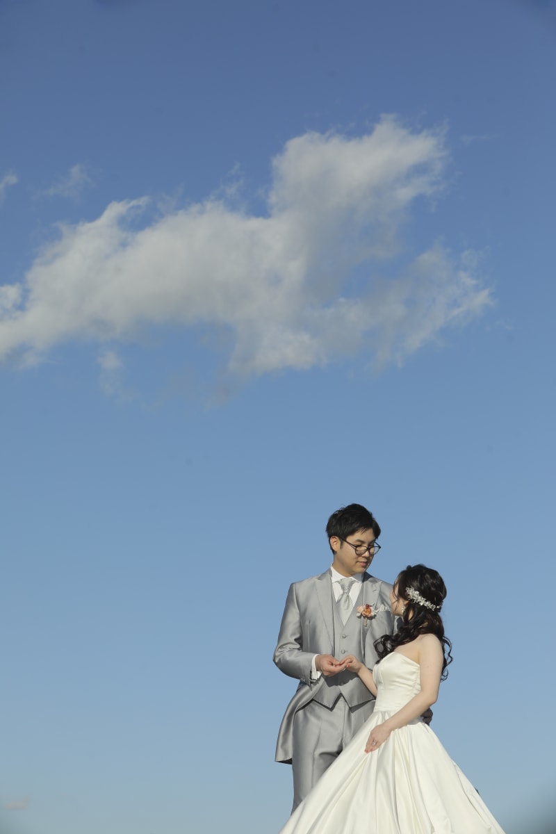 これも新婦様ご希望の青空ショット。この日は嘘のように空が晴れていました