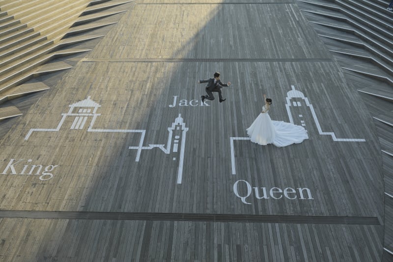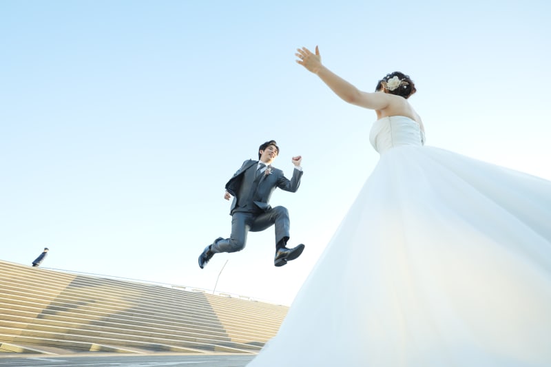 運動神経抜群の新郎様。新婦様が待つQueenのお城まで大ジャンプ!