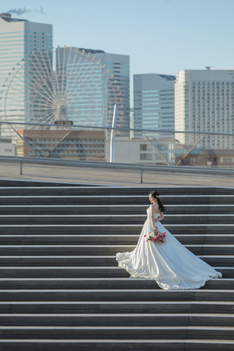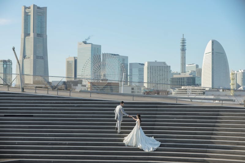 みなとみらい背景だけでなく、階段を使った雰囲気のある写真も残すことができます。