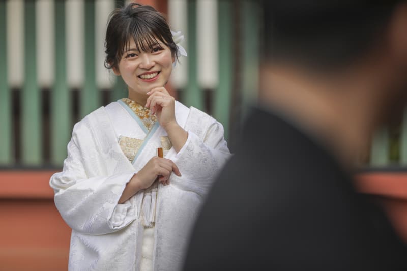 2箇所目は白無垢で浅間大社。この日は節分の日で、イベントが行われるらしく徐々に人が溢れてきました。