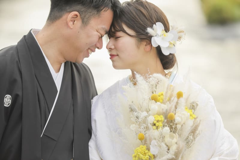 新婦様の手には持ち込みのドライフラワーのブーケが。この日のためによういされたそうです。