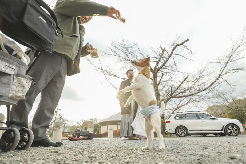 新婦様のお父様がソイくんの注意を引こうと頑張って下さっています。オムツがチャーミング。