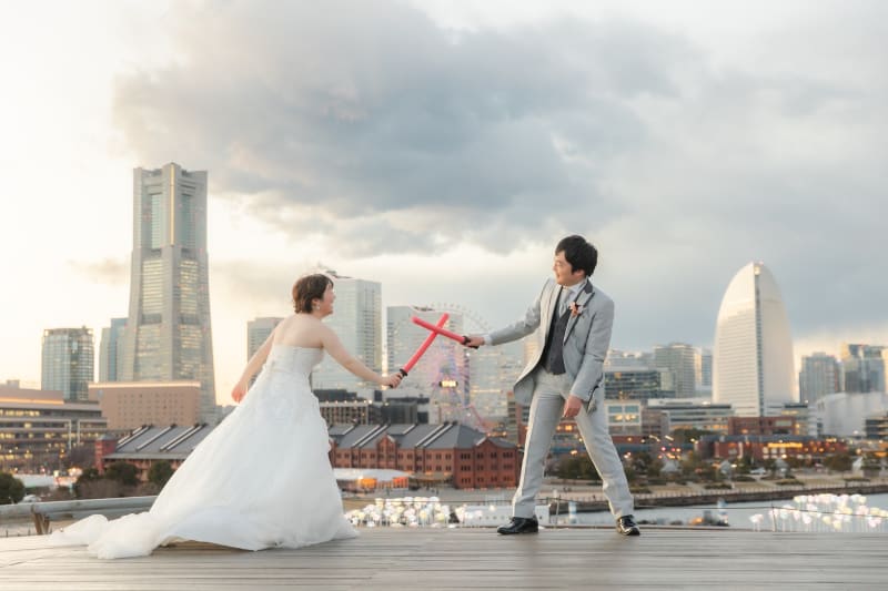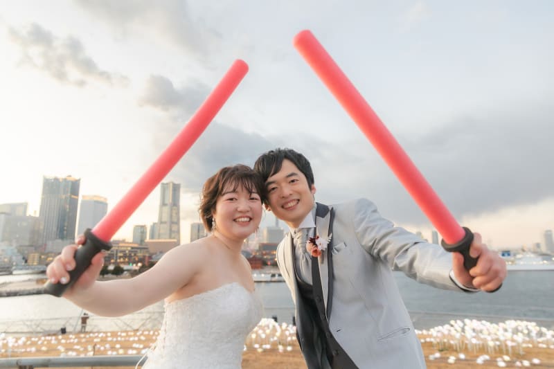 お2人はスポーツチャンバラが共通のご趣味とのこと!お小物を持ってきていただくとよりお2人らしいお写真になりますよ♪