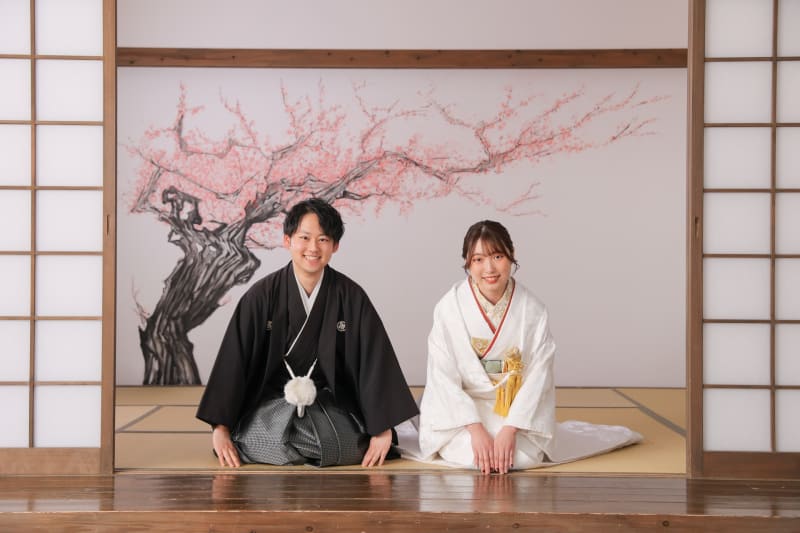 和装の締めはお茶室前でかっちりカットとお正座カット!