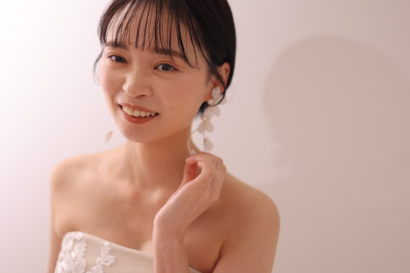 ウェデングドレスは大ぶりのイヤリングをポイントに、ヘアスタイルなどはあえてシンプルに仕上げました◎