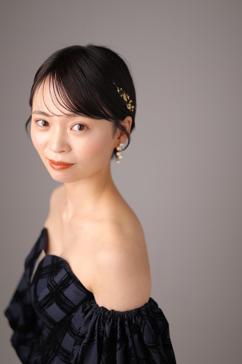 ネイビーのカラードレスには金箔×華奢なパールイヤリングを組み合わせました!