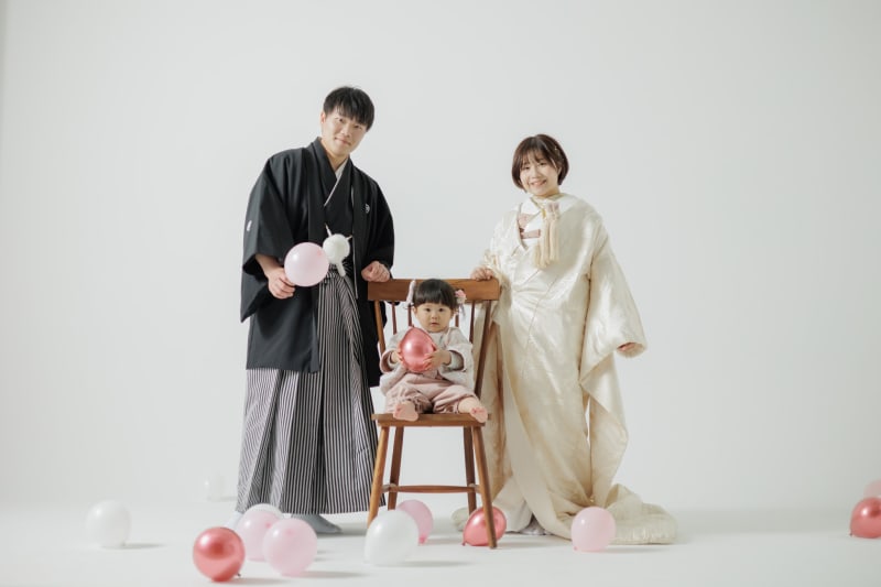 こちらは和装での撮影!ご息女様のお衣装も和装でばっちり!とっても可愛いです❤️