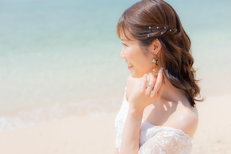 ヘアアクセサリーやイヤリングなど、ヘアメイクスタッフがしっかりヒアリングしながら選んでいきます!当日不安というかたも、お気軽にご相談してくださいね♪