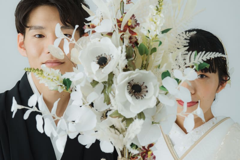 背景が真っ白だからこそ、お二人の表情やお衣装がよりくっきり!