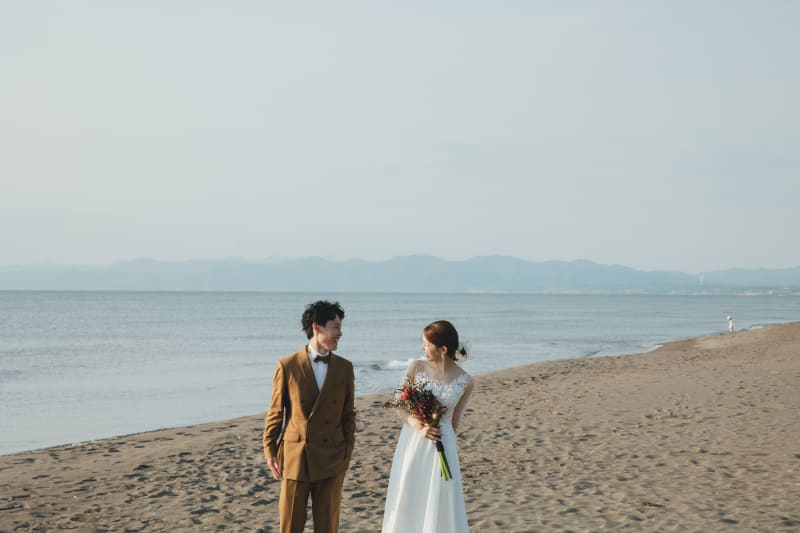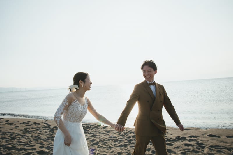 砂浜を思いっきり走ったり、ジャンプしたり!動きのあるカットでお二人の笑顔を引き出します♡