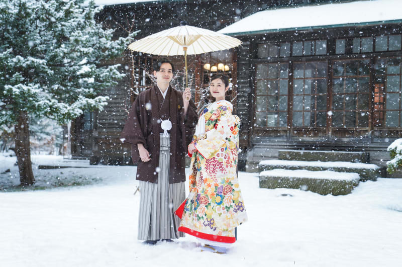 和装✕雪で北海道のウエディングフォト!気になる積雪の時期はいつ?☃