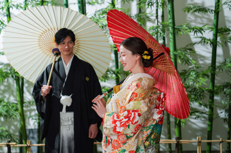 屋内庭園スタジオで本格的な和装ウエディングフォト!