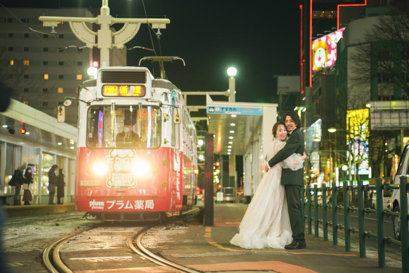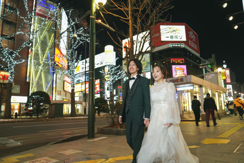 夜のすすきのでカジュアル&おしゃれなウエディングフォト!