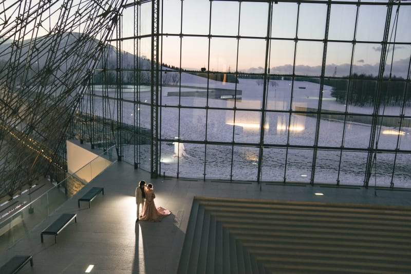 ガラスのピラミッドや白樺の並木道での撮影は四季を通して大人気✨️