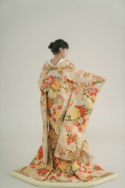 ふきの色はクリーム色の愛らしい仕上がりのお着物です。