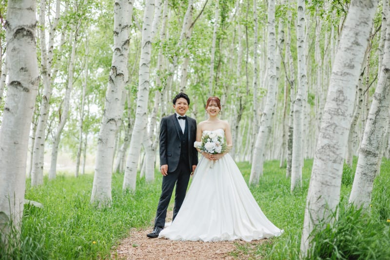 白樺並木はその美しいシルエットから、ウエディング撮影にも最適な場所として人気です。