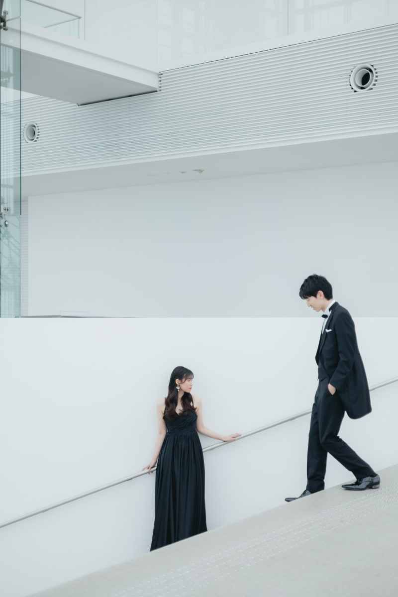 モエレ沼公園の建築が持つ静謐な美しさと、シックなスタイルの衣装や小物を組み合わせることで、クラシックかつモダンな印象を与えることができます。