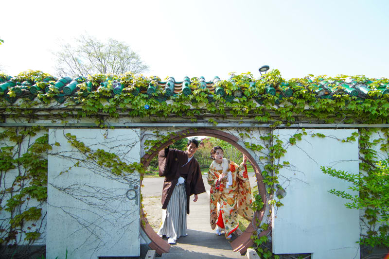 【伝統美×ナチュラルグリーン 百合が原公園で映える和装ウェディング】