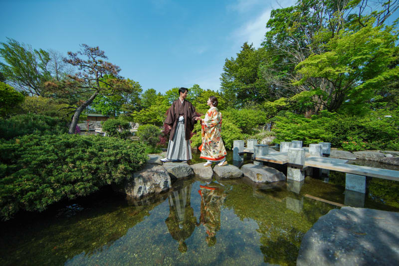 その一角に佇む「日本庭園」は静寂と趣あふれる空間で、和装にピッタリのロケーションです^^